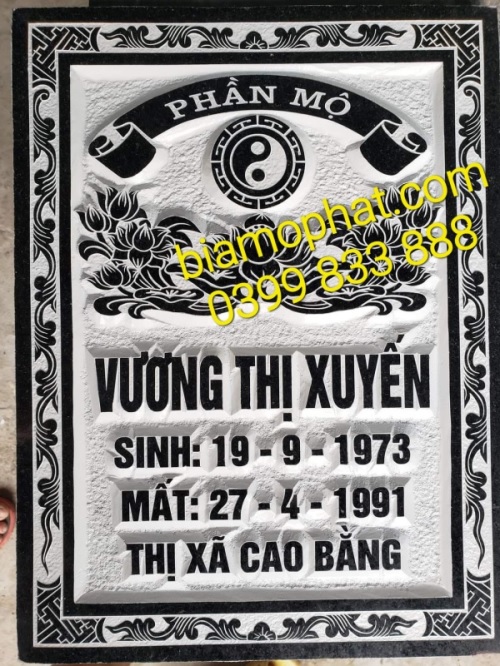 -Khắc Bia Mộ Chữ Nổi 3D: Chạm khắc thủ công, Phôi đá granite (hoa cương) tự nhiên, nhập khẩu được chọn lọc kỹ lưỡng, có màu đen nguyên thủy không phai màu theo thời gian.